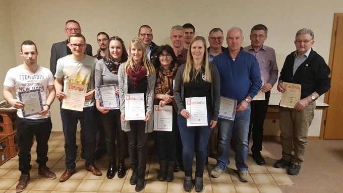 Für 25 Jahre Mitgliedschaft und der Ehrennadel in Silber: Daniel Bayer, Günther Bertsch, Matthias Brenner, Reinhold Eberwein, Daniela Graf, Theresia Haas, Jens Hoch, Isabel Mayer, Paulina Mayer, Sina Perst, Bastian Scheiffele, Sebastian Schöffel, Klaus Spangenberg, Sara Spangenberg, Tina Spangenberg, Lisbeth Weckenmann, Niklas Weckenmann, Melanie Wendt, Lydia Ziegler.