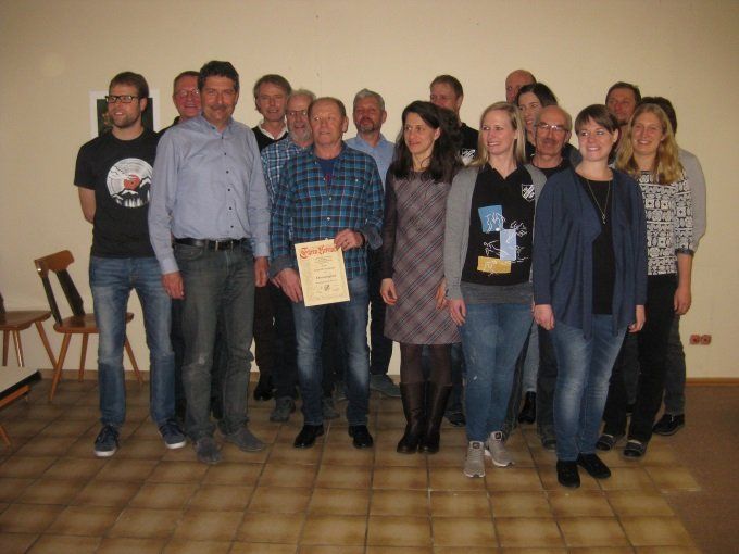 Als nächstes stand eine lange Reihe Ehrungen an, durchgeführt von Franz Kraft und Jochen Scherer. Insbesondere ernannten die beiden Eugen Hoch, Karl Uttenweiler und Erich Weckenmann für 50 Jahre Mitgliedschaft zu neuen Ehrenmitgliedern.